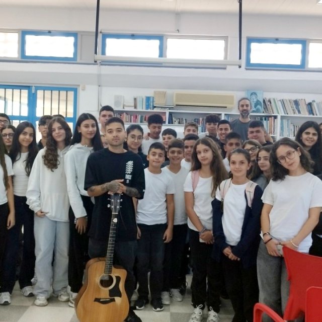 Στα πλαίσια του διαχρονικού στόχου του Υπουργείου Παιδείας, Αθλητισμού και Νεολαίας «Δεν Ξεχνώ και Αγωνίζομαι», η αγαπημένη ερμηνεύτρια, δημιουργός και ακτιβίστρια Αλέξια ξανά στο σχολείο μας , για να παρουσιάσει το επικό λαϊκό της ποίημα με μουσική στην κυπριακή διάλεκτο, με τίτλο «Κυπριακό», στο χώρο της βιβλιοθήκης μας.